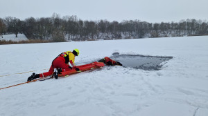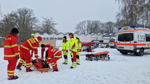 Zu Beginn erhielten die Teilnehmenden eine theoretische Einweisung. Dabei wurde vermittelt, worauf bei einer Eisrettung zu achten ist und der Unterschied zur Wasserrettung im Sommer liegt. Auch das Zusammenspiel mit dem Rettungsdienst wurde besprochen, um im Einsatzfall einen reibungslosen Ablauf sicherzustellen.