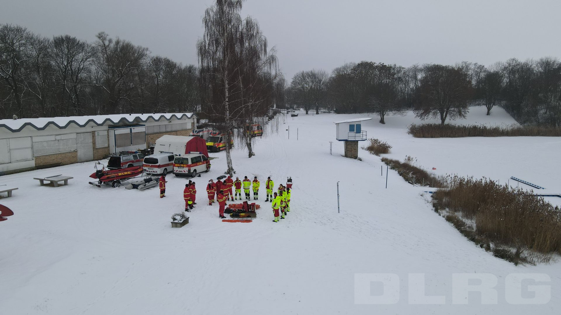 Am Samstag, den 31.01.2026, trafen sich die Einsatzkräfte der DLRG Halberstadt gemeinsam mit den Mitarbeitern des DRK Rettungsdienstes Halberstadt zu einer Eisrettungsübung am Halberstädter See. Ziel der Ausbildung war es, Rettungsmaßnahmen auf dem Eis zu trainieren und die Zusammenarbeit zwischen Wasserrettung und Rettungsdienst weiter zu stärken.